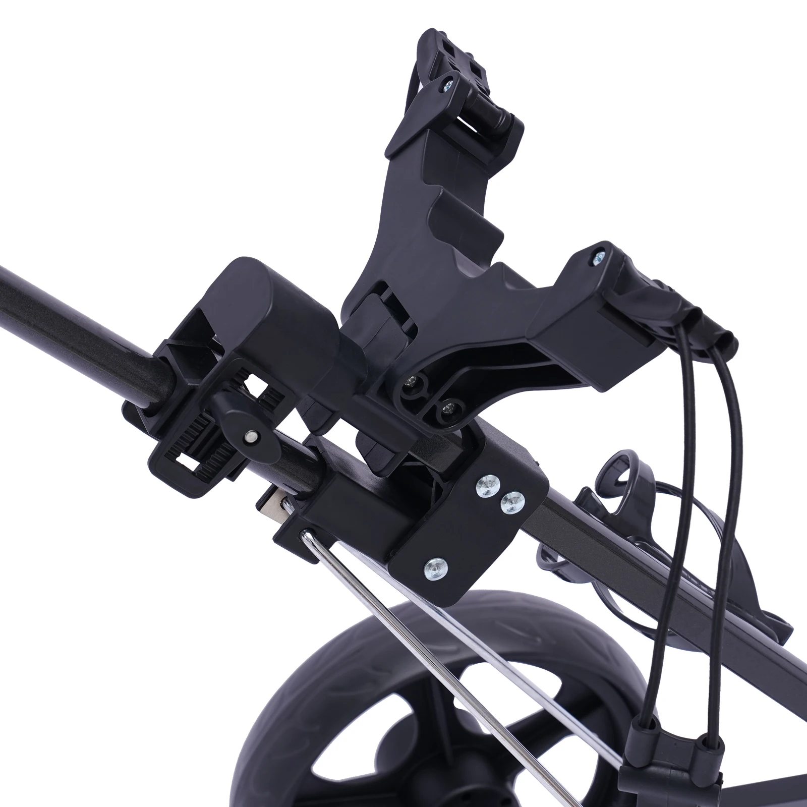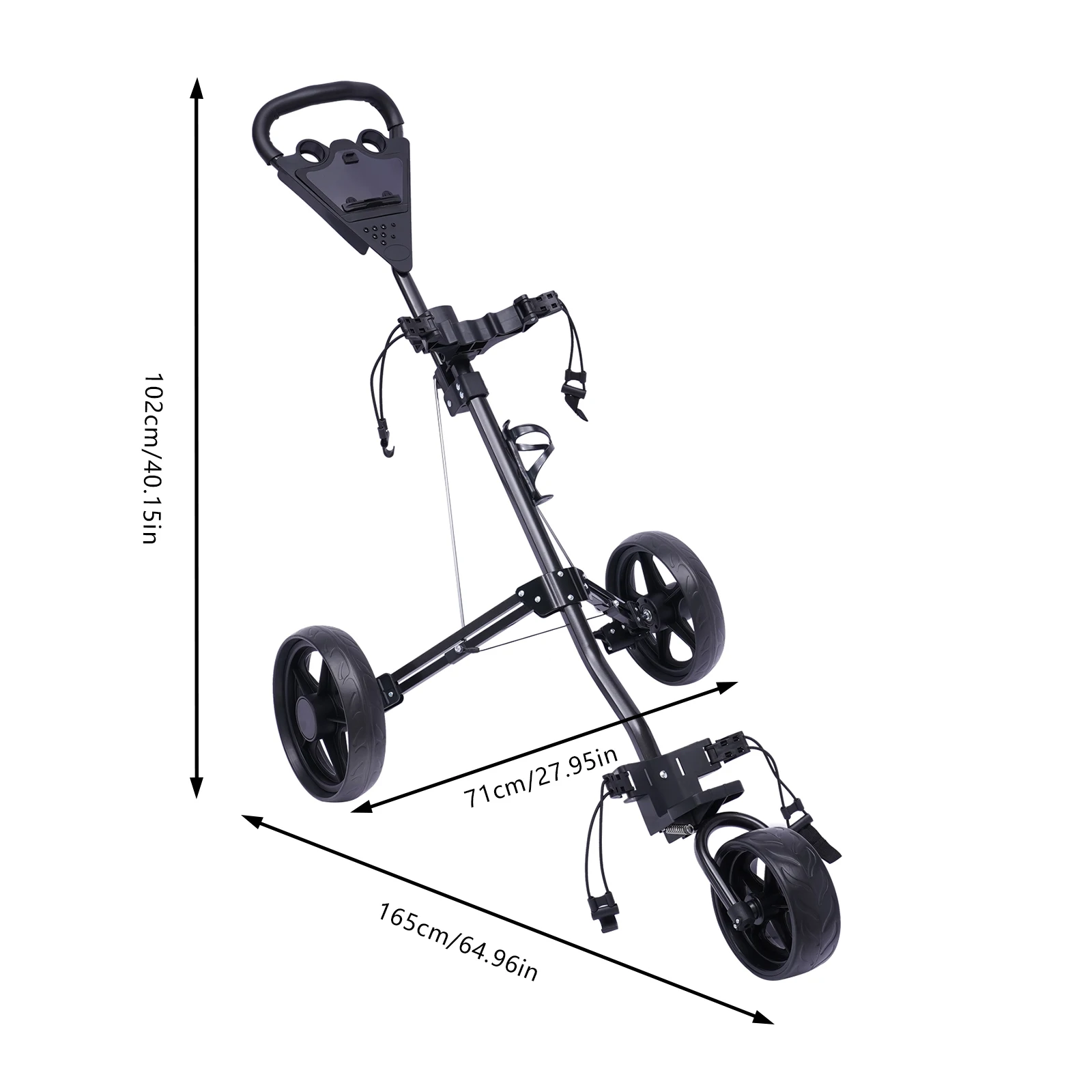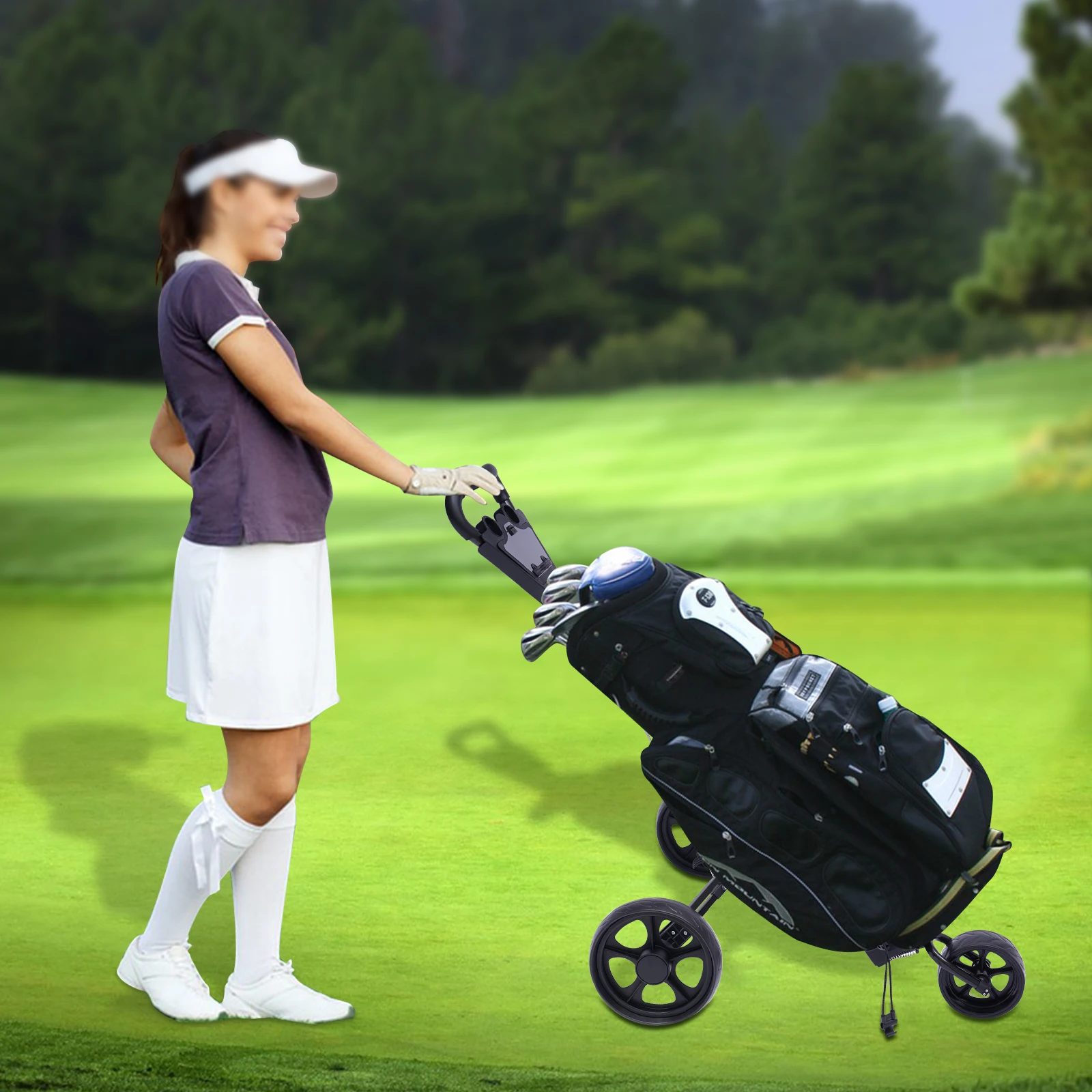 This 3-wheel foldable golf push cart is suitable for most teenagers and adults and can hold golf bags of most sizes.