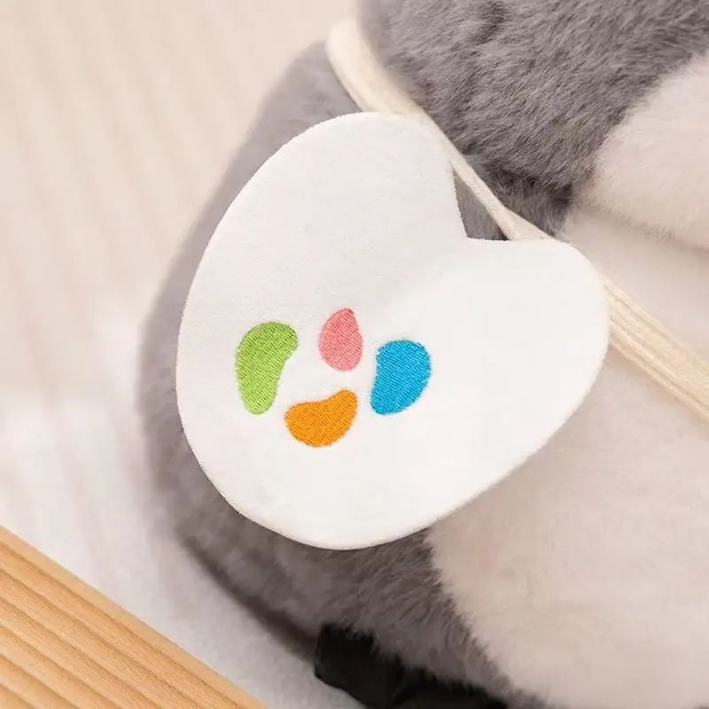 Unique design featuring an artist fishing chef penguin, adding a fun twist to a classic plush toy.