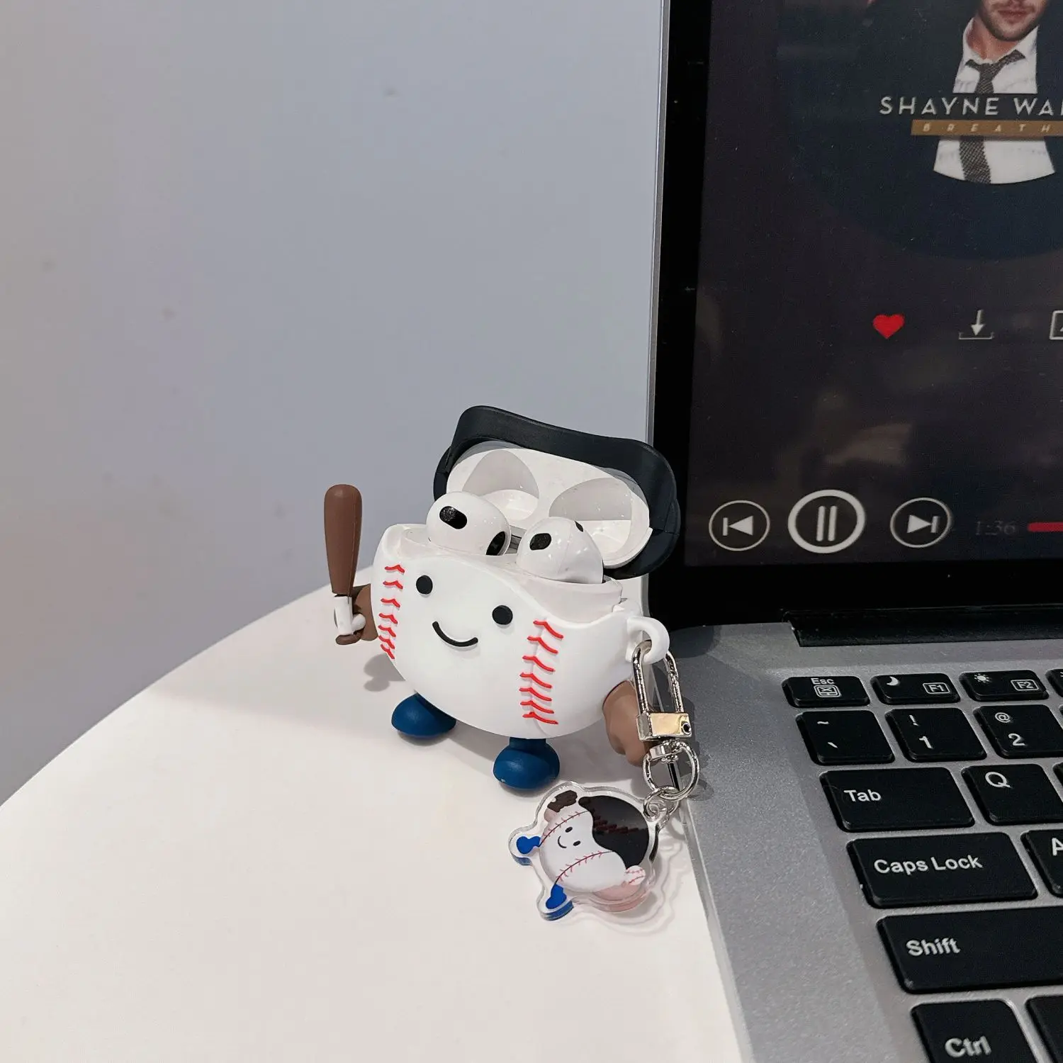 Cute Baseball Boy Pattern Headphone Cover For AirPods Pro2 Pro 3 2 1 Generation Case For AirPods Pro 2 USB C Funda With Keychain